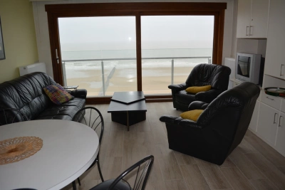 Beau studio pour 4 personnes avec canapé-lit et lit superposé. Salon avec vue mer et terrasse sur la digue. Cuisine ouverte tout confort. Salle de bain avec douche, lavabo, WC et machine à laver. Coin montagne avec lit superposé rabattable. Piscine dans la résidence ! Recommandé!