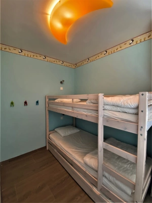 Appartement confortable de deux chambres à coucher au premier étage avec vue sur la mer. L'appartement convient à 6 personnes et les animaux domestiques ne sont pas autorisés. En outre, l'appartement comprend le wifi et la télévision numérique. Dans ce bâtiment, il y a un local à vélos commun, mais souvent le nombre de places est limité ou il est difficile d'y accéder. Nous louons des casiers à vélos individuels et sécurisés à un prix avantageux. N'hésitez pas à demander plus d'informations à l'un de nos employés.