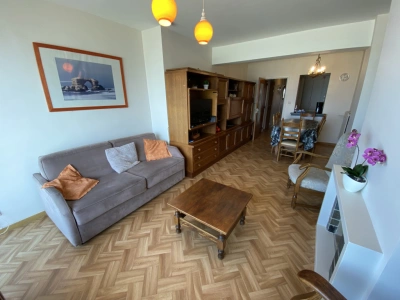 Appartement agréable avec vue frontale sur mer, près du Casino. Disposition: living, cuisine séparée, toilette, salle de bain avec baignoire, deux chambres à coucher et une terrasse sur la digue et en arrière. Prévu pour 6 personnes.