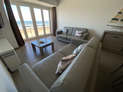 Appartement moderne, face à la mer et près du Casino. Composition: living avec cuisine ouverte, salle de bain avec douche et toilette, toilette séparée, chambre à coucher avec lit superposé, deuxième chambre à coucher avec lit double et lit superposé. Prévu pour 8 personnes.