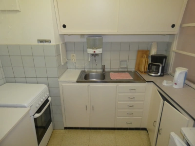 Appartement situé au centre de la digue avec vue frontale sur la mer. Composition: salon avec canapé-lit pour deux personnes, cuisine séparée, salle de bain avec baignoire, toilettes séparées, chambre spacieuse avec deux lits superposés et deuxième chambre à coucher avec un lit double. Prévu pour 8 personnes.