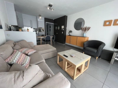 Bel appartement dans le centre près de la Digue. Composition : séjour avec cuisine ouverte, salle de bain avec douche, WC séparé, 2 chambres, terrasse ensoleillée. Pour 4 personnes.