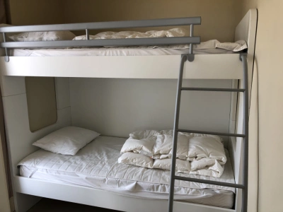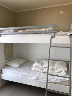 Cet appartement magnifique et élégant est situé au cinquième étage de la prestigieuse résidence Des Nations. Le spacieux salon offre une vue imprenable sur la mer et est baigné dans une abondance de lumière naturelle. Détendez-vous dans cette oasis de tranquillité et profitez de la télévision numérique et du WIFI. La cuisine ouverte moderne est entièrement équipée d'un lave-vaisselle et d'une cuisinière à gaz. L'appartement dispose de deux chambres, dont une avec une vue panoramique sur la mer et un lit double. Cette chambre est adjacente à une salle de bain avec baignoire et lavabo. La deuxième chambre dispose d'un lit superposé avec un lit de 140 cm en bas et 90 cm en haut et est adjacente à une salle de bain avec douche et lavabo. Des toilettes séparées sont également disponibles. Un espace de rangement complète cette propriété. Les animaux domestiques et les fumeurs ne sont pas autorisés.