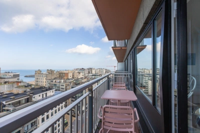 Superbe appartement au 13ème étage avec deux terrasses et une vue fantastique sur la mer. Cet appartement, situé au cœur d'Ostende, offre une combinaison idéale de confort et de commodité. Profitez de la proximité des magasins, des restaurants et de toutes les commodités qu'offre le centre-ville animé. L'appartement, décoré avec goût, dispose d'un salon spacieux et lumineux, de deux chambres et de deux grandes terrasses où vous pouvez vous détendre et profiter de la magnifique vue sur la mer et le centre d'Ostende. Les animaux de compagnie sont autorisés et il est possible de louer un garage dans la résidence.