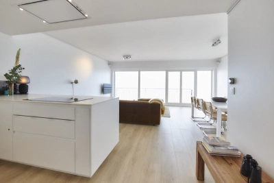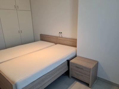 Appartement exclusif, entièrement rénové et transparent, avec un maximum de lumière et superbe vue sur la mer et la ville, situé au 26ème étage de la résidence "Europacentrum". Il comprend : un spacieux salon lumineux avec vue sur la mer et terrasse ; une télévision intelligente, Netflix et WIFI ; une cuisine ouverte et entièrement équipée ; une salle de bains moderne avec douche à l'italienne ; un débarras avec lave-linge/sèche-linge ; des toilettes séparées et deux belles chambres à l'arrière, chacune avec un lit double et accès à la terrasse. Depuis la terrasse ensoleillée située à l'arrière, vous avez une vue ouverte unique sur la ville et le port. Place de parking et garage à vélos inclus dans la résidence Animaux domestiques interdits et interdiction de fumer