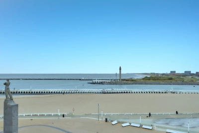 Appartement 2 chambres à coucher sur la digue de Middelkerke. Living spacieux avec une belle terrasse. Cuisine ouverte tout confort. Salle de bains avec baignoire et douche. Chambre à coucher avec 2 lits simples, l'autre avec un lit double. Terrasse ensoleillé. Piscine et bar dans la résidence et emplacement de voiture compris dans le prix.