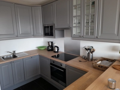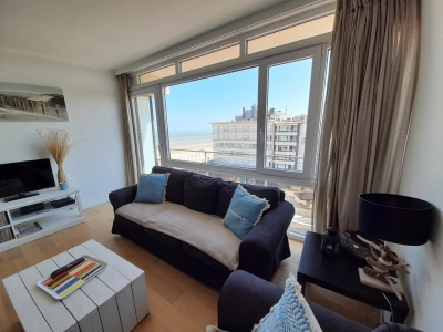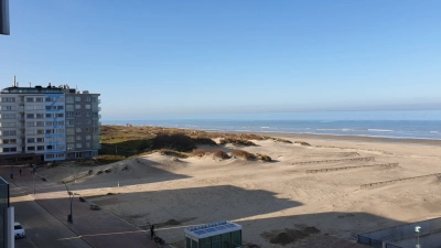 Appartement spacieux avec vue imprenable sur les dunes et la mer comprenant 2 chambres, 1 chambre avec 1 lit double, 1 chambre avec 1 lit superposé et 1 lit canapé. Grand salon avec terrasse. Cuisine ouverte, salle de bains avec douche et double lavabo, toilettes séparées. Chauffage central au fuel. 5ème étage avec ascenseur. Garage inclus situé sous la digue.