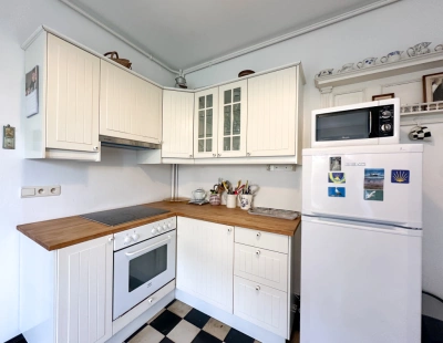 Appartement rénové de 2 chambres à coucher à un saut de puce de la mer. L'appartement se trouve au troisième étage d'un immeuble sans ascenseur. Aménagement : séjour avec cuisine ouverte, 2 chambres dont 1 avec lit double et 1 avec 2 lits simples, toilette séparée et salle de bain spacieuse avec douche à l'italienne. Une place de parking devant l'immeuble.