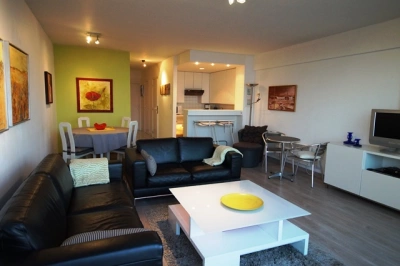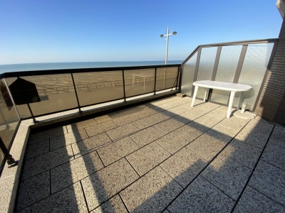 Splendide studio rénové situé sur la digue au-dessus de l'agence, au 4ème étage, se composant d'un living avec vue unique sur la mer, TV digitale, WIFI, divan-lit pour 2 personnes, cuisine moderne ouverte avec lave-vaisselle ... , nouvelle salle de bains avec douche, lavabo et toilettes; un coin à dormir avec un lit double.