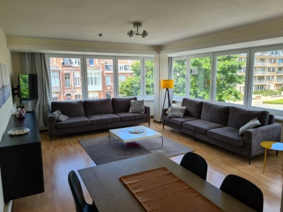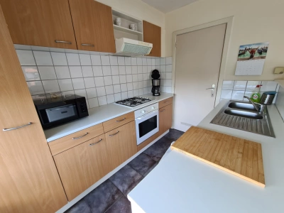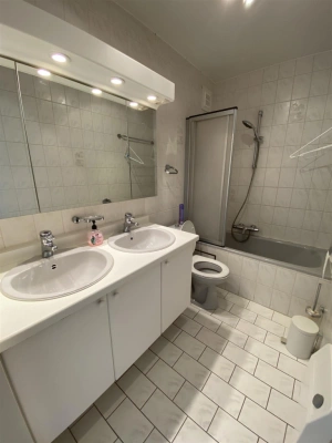 Bel appartement avec vue latérale sur la mer, au centre de Middelkerke. Disposition: salle de séjour avec cuisine ouverte, salle de bain avec bain et toilette et chambre à coucher. Equipé pour 4 personnes.