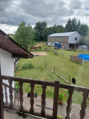 L'accès à l'appartement se fait par un petit escalier situé à l'arrière de la maison, côté jardin.