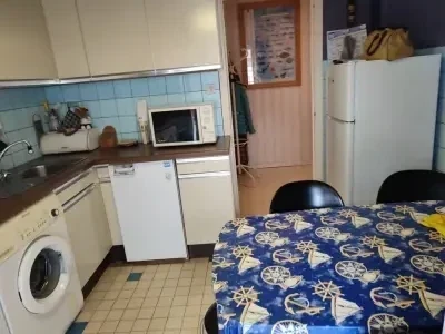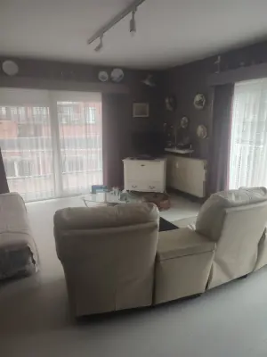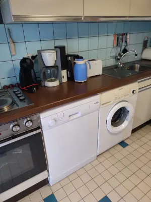 Appartement duplex, situé à proximité de la Rotonde, Garage pour une voiture à l'arrière du bâtiment, compris dans le prix. Living32m², avec divan clic clac + salon avec fauteuils relax, tv écran plat + lecteur dvd + cassette, chaîne Wifi ; cuisine équipée9m² avec lave-vaisselle, lave-linge, étendoir à linge, fer et planche à repasser ; cuisinière gaz avec four. Four micro-ondes, croque-monsieur, frigo 169l, congélateur 37l,percolateur, Dolce Gusto, grille-pain, service fondue, cuiseur vapeur, cuiseur riz, bbq de table, etc.; 2 chambres 13m² chacune. Hall de jour + wc, hall de nuit + wc, salle de bain avec baignoire équipée d’une robinetterie avec douche, bidet, évier, sèche-cheveux.