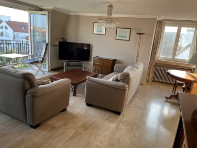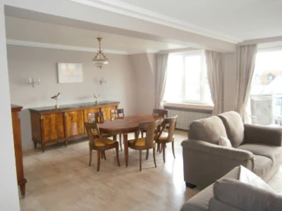 Knkke Le Zoute Lux appartement (100 m de la digue ) 136m2 avec GARAGE 2 voitures avec prise d'électricité , 2 chambres à coucher vue mer, grand hall pouvant servir de 3ème chambre,2 salles de bains, 3 wc, mach à laver, séchoir, cuisine équipée, grand living avec terrasse plein Sud vue tennis. Lit BB. Tout confort. TV grand écran WI FI Avenue du Littoral,188 tél: 0476/269.001