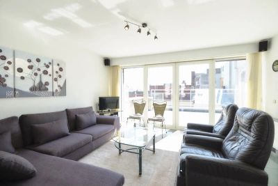 Magnifique appartement duplex, situé côté soleil à 15 m de la mer et la plage. Au 6ème étage vous trouvez un grand living ensoleillé avec 2 grandes terrasses ensoleillées et vue latérale sur la mer, TV digitale et WIFI, belle cuisine ouverte avec lave-vaisselle ...; toilettes séparées. Au 5ème étage il y a 3 chambres à coucher dont 2 en façade avec vue latérale sur la mer (installées avec 2 lits doubles et 2 lits jumeaux), 2 salles de bains chacune avec une baignoire, douche et lavabo; toilettes séparées et un débarras avec machine à laver et séchoir.L'appartement dispose d'un garage box à proximité de l'appartement, inclus dans le prix. Animaux et fumeurs interdits.