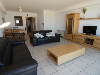 Appartement spacieux avec vue frontale sur la mer, près du Casino. Disposition: salle de séjour, cuisine moderne, salle de bain avec baignoire/douche, 2 chambres, balcon à l'avant et à l'arrière. Prévu pour 6 personnes.