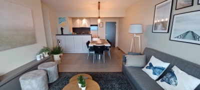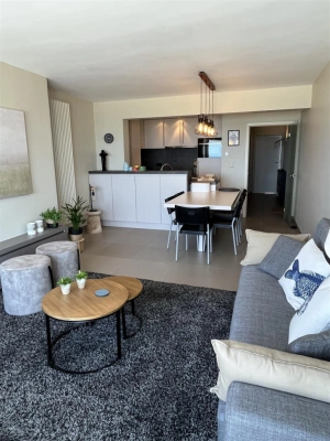 Appartement confortable avec vue mer frontale, près du Casino. Agencement : séjour avec cuisine ouverte, salle de bains avec baignoire, toilettes séparées, deux chambres spacieuses et petite terrasse à l'arrière. Équipé pour 5 personnes.