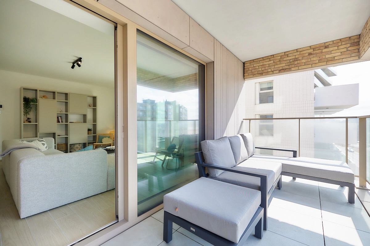 Bienvenue dans cet appartement exceptionnel, situé dans le complexe de construction neuf, O'Sea, entouré de verdure luxuriante et offrant une vue sur la mer depuis la terrasse ensoleillée. Cet appartement raffiné offre une finition de qualité supérieure et une décoration soignée entièrement rénovée offrant tout le confort moderne. Adjacent au salon, vous trouverez la terrasse baignée de soleil, où vous pourrez vous détendre dans le confort des meubles de terrasse et profiter du cadre spectaculaire. La cuisine ouverte est équipée d'appareils de haute qualité et offre de nombreuses possibilités pour exprimer vos talents culinaires. Avec deux chambres spacieuses, dont une est équipée d'un lit double confortable et l'autre d'un charmant lit superposé et d'un lit simple supplémentaire, l'appartement convient parfaitement à tous. La salle de bains luxueuse dégage une atmosphère de pure détente avec une douche spacieuse à l'italienne. De plus, un WC séparé se trouve dans l'appartement. En outre, l'appartement dispose d'un garage privé où votre voiture peut être en sécurité, ainsi que de deux espaces de rangement spacieux pour les vélos afin de choyer vos deux-roues.