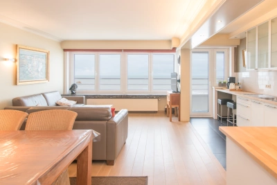 Appartement digue de mer luxueux et très spacieux avec une situation très centrale. Nouvelle cuisine ouverte avec une petite terrasse à la digue. Living très agréable et aménagé avec beaucoup de goût. Salle de bains très moderne avec tout confort. Terrasse ensoleillée à l'arrière. L'appartement est situé au cinquième étage. A conseiller!