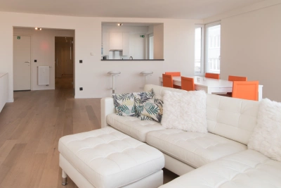 Très bel appartement à deux pas du centre et de la plage, 7ème étage comprenant : séjour avec vue sur le centre, balcon, TV digitale et WIFI, cuisine équipée devant avec lave-vaisselle et four à micro-ondes, salle de bains avec douche et lavabo, lave-linge, sèche-linge, WC séparé et 2 chambres dont une avec lit double et une avec un lit superposé. Animaux et fumer interdits.