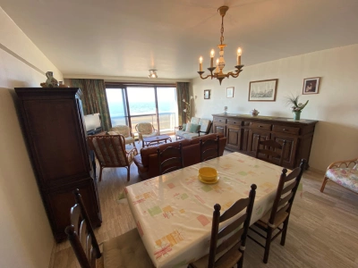 Appartement très agréable avec vue sur mer. Composition: séjour avec terrasse à l'avant et à l'arrière, cuisine ouverte avec lave-vaisselle, salle de bain avec baignoire, toilette séparée, chambre avec lit double et chambre avec deux lits simples. Prévu pour 4 personnes.