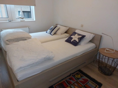 Bel appartement dans le centre et près de la Digue de Mer. Composition: living avec cuisine ouverte, salle de bain avec baignoire/douche, débarras, toilette, deux chambres à coucher et une terrasse très spacieuse. Prévu pour 4 personnes.