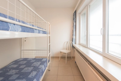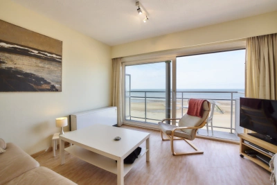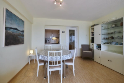 Appartement de coin agréable sur un bel-étage à quelques pas du Casino. Living spacieux et lumineux avec vue frontale et latérale sur mer. Chambre à coucher avec un lit superposé et un divan-lit dans le living. L'appartement est situé au premier étage.