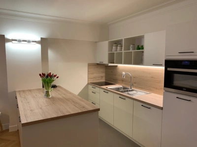Appartement spacieux avec vue frontale sur mer. Composition: séjour avec cuisine ouverte, terrasse, salle de bain avec douche et trois chambres à coucher. Dans la résidence il y a une piscine et un parking privé dans l'immeuble inclus dans le prix. Prévu pour 6 personnes.