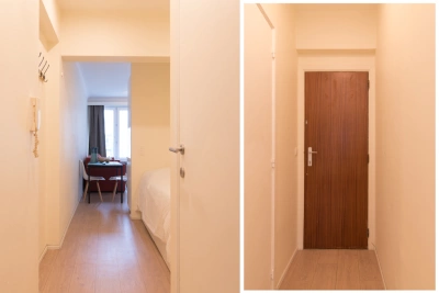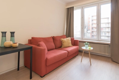Appartement moderne sur la digue avec 2 chambres à coucher : 1 chambre avec 1 lit double, douche et lavabo, 1 chambre avec 2 lits simples et divan-lit pour 2 personnes dans le living, living avec superbe vue sur la mer, terrasse devant et à l'arrière, tv couleur, cuisine avec lave- vaisselle, micro-onde et four, salle de bains avec baignoire et lavabo, toilette séparée, 1ier avec ascenseur. Chauffage électrique. Petits animaux domestiques acceptés. Débarras commun. WIFI gratuit.