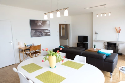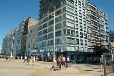 Bel appartement moderne situé sur la digue en face du champs de courses, au 10ème étage de la Résidence Royal Palace se composant d'un living avec une vue unique et terrasse à l'avant, TV digitale et WIFI, cuisine équipée avec lave-vaisselle, machine à laver; salle de bains avec une baignoire/douche et lavabo, toilettes séparées et 2 chambres à coucher à l'arrière avec une terrasse ensoleillée et vue sur le champs de courses (un lit double et 3 lits jumeaux). Box de garage dans la Résidence inclus. Animaux et fumer interdits.
