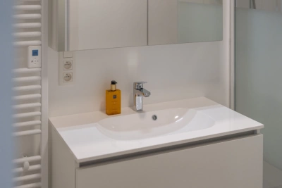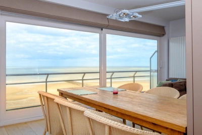 Splendide appartement rénové dans la Résidence Royal Palace, située sur la digue en face des champs de courses, au 6ème étage : beau living avec une large vue sur mer et terrasse à l'avant, TV digitale et WIFI, cuisine moderne ouverte avec lave-vaisselle, débarras avec une machine à laver et séchoir, 3 chambres à coucher à l'arrière avec une terrasse ensoleillée et une vue magnifique sur les champs de courses (une chambre avec un lit double, 2ème chambre avec un lit double et un lit simple, 3ème chambre avec des lits superposés pour 3 personnes). Il y a 2 salles de bains dans l'appartement, une avec baignoire et lavabo; la 2ème salle de bains avec une douche et lavabo; il y a des toilettes séparées. Box de garage dans la Résidence compris. Animaux et fumeurs interdits.