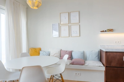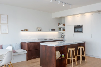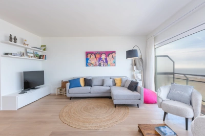 Ce magnifique appartement rénové de deux chambres est situé au onzième étage et offre deux terrasses spacieuses avec une vue panoramique sur la mer. Le salon spacieux et lumineux se fond harmonieusement avec la cuisine ouverte, équipée de toutes les commodités modernes. Les deux chambres disposent chacune d'une salle de bains privative unique, et il y a également des toilettes séparées disponibles. Tant le long du salon que le long des chambres s'étendent de vastes terrasses. Le long du salon, vous profiterez d'une vue imprenable sur la mer, tandis que la terrasse ensoleillée près des chambres offre une vue sur l'hippodrome verdoyant, créant ainsi une connexion agréable avec la nature.