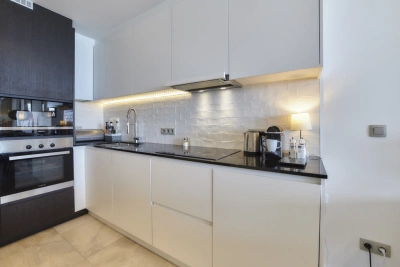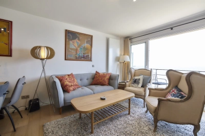 Appartement entièrement rénové situé dans la résidence Royal Palace au 13ème étage comprenant un hall d'entrée avec armoire, un salon avec une belle vue sur la mer et une terrasse avant. Télévision digitale et WIFI disponibles. Cuisine ouverte, entièrement équipée (lave-vaisselle, lave-linge/sèche-linge...), toilettes séparées, deux chambres à l'arrière, chacune avec un lit double. Une des chambres a accès à une douche à l'italienne et un lavabo. Salle de bains avec lavabo, toilettes et douche à l'italienne. Place de parking compris. Les animaux domestiques et les fumeurs ne sont pas autorisés.