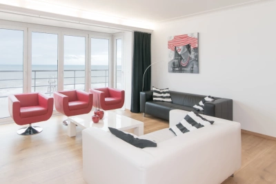 Appartement avec 2 chambres, très confortable, situé au calme et à 50 m de la mer. Terrasse en angle, avec garage. Tv digitale et internet sans fil. Animaux non admis.