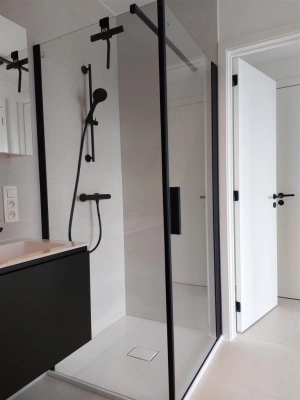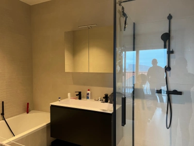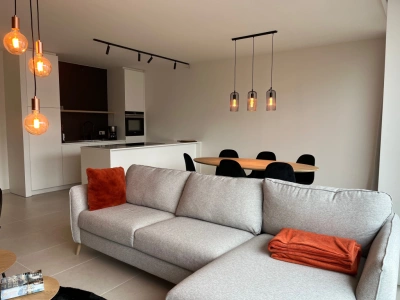 Appartement moderne situé au centre. Disposition: séjour avec cuisine ouverte, 2 chambres, salle de bain avec baignoire et douche, WC séparé et débarras. à l'avant il y a une petite terrasse, une grande terrasse à l'arrière.