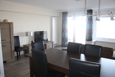 Appartement digue de mer tout près du Casino de Middelkerke. Living très spacieux avec une petite terrasse à la digue. Cuisine et salle de bains moderne. Deux chambres à coucher spacieuses avec une terrasse à l'arrière. L'appartement est situé au premier étage. A conseiller!