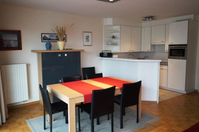 Bel appartement entièrement rénové situé sur la promenade tout près du Casino, au 4ème étage se composant d'un beau living avec une splendide vue sur la mer et balcon à l'avant, TV digitale, divan-lit pour 2 personnes, nouvelle cuisine ouverte équipée avec lave-vaisselle, salle de bains avec douche à l'Italienne et lavabo, machine à laver, toilettes séparées et 1 grande chambre à coucher à l'arrière avec un lit double. Animaux et fumeurs interdits.