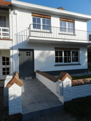 App. de charme entièrement rénové, déco tendance, 1° ét. de la villa Ramah, dans quartier classé dit des Sénégalais, très calme. Lumineux, confortable et très propre, à 5 min. à pied de la digue et à 500 m. des commerces. Living très spacieux, TV écran plat HD, décodeur, Wifi. Longue terrasse avec vue sur jardins et villas 1900. Chaises de jardin. Cuisine super équipée: lave-vaiss. et lessiv., nouvelle taque gaz, microondes/four, percolateur, Senseo, grille-pain, fer à rep., chaise bébé, 2 chambres avec nouvelles literies et couettes (lit 160 et 2 lits jumeaux) et canapé-lit (160) dans le salon. Double penderie. Nouveaux sanitaires douche. WC séparé. Vestiaire séparé. Chauffage central. Double vitrage. Non fumeur. Possibilité de garer vélos derrière la villa. Se loue par sem. du vendredi au vendredi suivant. Par quinz: - 20 %.