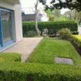 Jardin et terrasse à l'avant et le côté du bâtiment, peut servir à bicyclettes. Parking et bicyclette stockage en sous-sol.