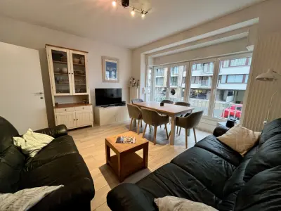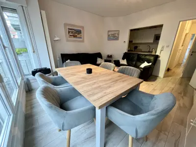 Grand appartement tout confort (2 chambres) situés au calme à 30m de la digue. Vue latérale mer. Facilité de parking. Très grande terrasse (new) en pierre bleue avec 2 transats, table + chaises. Nouvelle cuisine super équipée. nouveau sol en carrelage imitation plancher bois (anti allergie). WIFI GRATUIT +