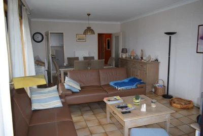 Magnifique appartement (5 personnes), deux chambres situé en face des dunes et à 50m de la plage, au calme. Cuisine équipée entièrement rénovée, living, salon, salle de bain (douche-baignoire), WC, hall d'entrée. 1 chambre avec lits simples et 1 chambre avec lit double. L'appartement est entouré de terrasses spacieuses. Parking aisé.