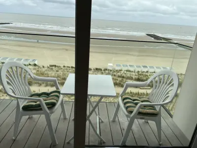 Praktisch appartement 5e verdieping voor max. 5 personen, met 2 slaapkamers één met een tweepersoonsbed en ander met eenpersoonsbed: 1 of 1-2 personen. , doucheruimte, 1 toilet, 2 terrassen.
