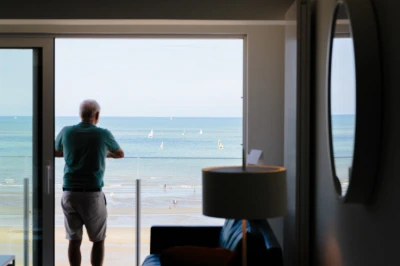 L'appartement se situé au 5 éme étage du bâtiment Belle Vue, à hauteur du service de tourisme de St Idesbald. La façade de l'immeuble Belle Vue a subi une rénovation complète en 2017. L'appartement même a également été complètement rénové en 2017, avec beaucoup de goût. Tout confort est prévu , avec une finition de qualité.La fenêtre ( jusqu'au sol ) sur toute la largeur de l'appartement vous donne une vue époustouflante sur la plage et la mer. L'appartement bénéficie d'une situation idéale à distance de promenade du cœur commercial sympa de St Idesbald.