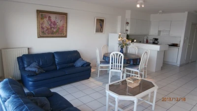 Appartement lumineux 4ième étage digue de mer avec garage fermé à 50m, position centrale à St Idesbald (près des magasins, restaurants, lavoir), micro onde, frigos, four avec plaques vitro céramiques, lave vaiselle, Tv écran plat avec décodeur telenet, lecteur CD, 2 ch. (1 lit double) 4 lits simples superposés, salle de bain. Prix réduit de 25% pour les semaines du 29-08 au 12-09 337 € au lieu de 449 €
