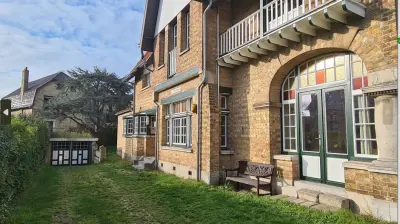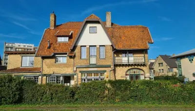 Grande villa de charme sympa, très lumineuse, à 150m de la plage dans le calme vieux quartier Dumont protégé. Très grand living, feu ouvert, six chambres (5 très grandes et une petite), 11-12 personnes, 1 grande salle de bain avec douche et baignoire séparée, jardin, cuisine super équipée, barbecues, TV, radio-CD, accès Internet illimité, possibilité de parquer 5 à 6 voitures. Nouveaux châssis, nouveau chauffage central. Peut tout faire à pied. Location vacances scolaires. Tél : 0475 59 61 12