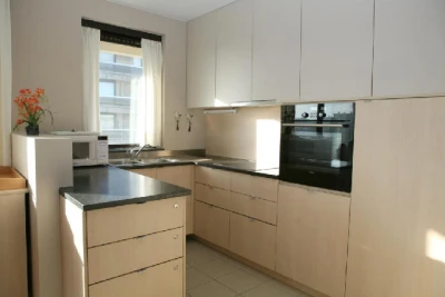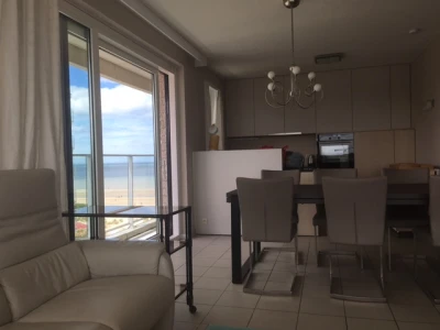 La PANNE : appartement renové, illumineux au 7ième étage avec vu latérale sur la mer et à 50m de la plage et pleine de jeux 'Esplanade'. Cuisine bien équipée, 3 chambres (7 lits). 2 terrasses spacieuses avec vu latérale 'coucher de soleil sur la mer' et les Polders'. Garage fermé (voiture +vélo's) sous-sol avec ascenseur 'direct'. Centre ville et magasins à 500m. Facile accès train et arrêt de tram à 200m. Balade en vélo's.