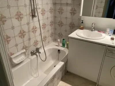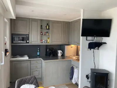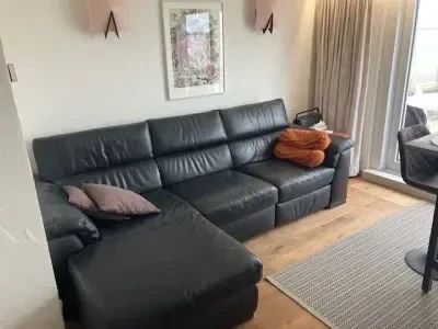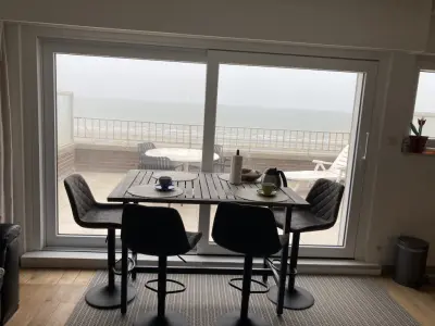 Appartement sur le toit avec vue frontale sur la mer depuis le 9ème étage, terrasse spacieuse à l’avant et aussi à l’arrière avec vue sur le quartier Dumont et les tours de Furnes. Deux chambres doubles, lit bébé, salle de bain avec baignoire/douche, lavabo et toilettes séparées. Salon avec grand canapé relaxant, cuisine ouverte avec lave-vaisselle, four combiné avec micro-ondes, chauffe-eau, cafetière et plaque électrique. Marmites et poêles, couverts, réfrigérateur-congélateur. Chaises et tables de terrasse, transats.