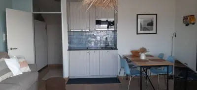 Onze studio is beschikbaar voor een mooie periode aan zee, in de Westhoek vlakbij het natuurgebied. Ruime woonstudio (4 personen) met apart slaapgedeelte. Frontaal zeezicht, direct aan het strand, ideale ligging. Groot terras, parketvloer, kleurentelevisie, badkamer met douche en ligbad, enz... Gratis parkeren onder het gebouw. Prijs per weekend: € 250 - prijs per week (van zondagavond tot zondagavond) vanaf: € 300, Pasen: € 360, mei: € 360, juni: € 360, juli-augustus € 430, september: 360 €, oktober 330€. Herfstvakantie: € 330, Kerstvakantie: € 360, Toeslag elektriciteitsverbruik (volgens digitale meter dag en nacht (€ 0,50/kwh). Tot binnenkort.