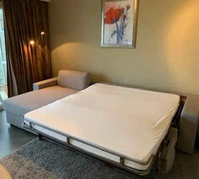 - Vaste espace de vie avec cuisine ouverte : entièrement meublé avec un lit de siège confortable de 1,6 m pour 2 adultes.