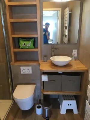Idéalement le studio a une capacité de 4 personnes. Un lit double dans la pièce de vie et deux lits superposés dans la chambre du hall d’entrée. Deux personnes supplémentaires peuvent éventuellement dormir dans le divan lit si nécessaire portant la capacité à 6 personnes. Tout y a été conçu pour que nous y passions un séjour agréable avec une cuisine équipée, réfrigérateur, salle de bain avec douche italienne, balcon et une place de parking dans le garage sous l’immeuble où l’ascenseur nous amène au sixième. Il est petit mais bien aménagé et bien situé. C’est un bien familial que nous proposons en location régulièrement. Nous l’avons entièrement rénové récemment et vous faisons confiance pour y séjourner « en bon père de famille ». Voilà si vous êtes intéressés contactez-moi et je vous souhaite déjà un excellent séjour!