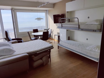 Le studio est situé sur la digue de mer de Nieuwpoort. Avec une vue panoramique sur la mer du haut du 5em étage (avec ascenseur), ce logement vous réserve un espace accueillant dédié à la détente et au confort.
